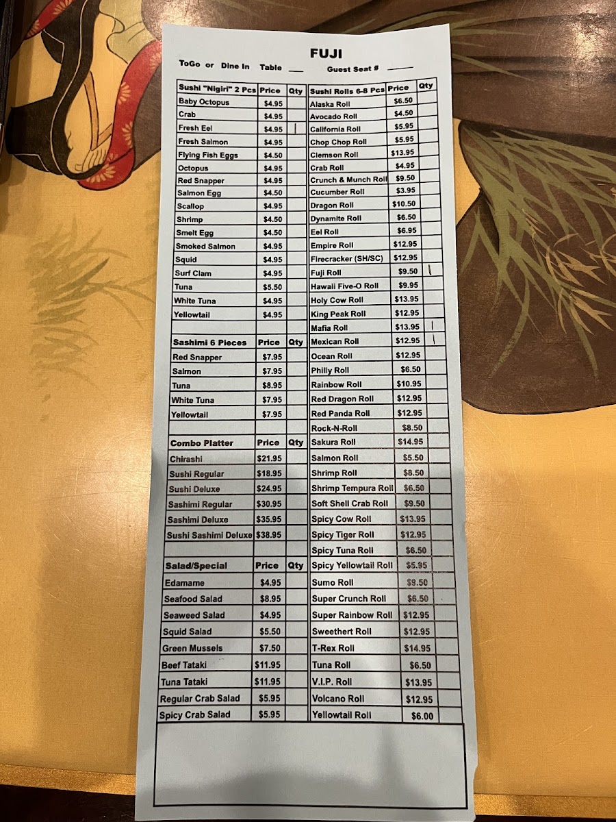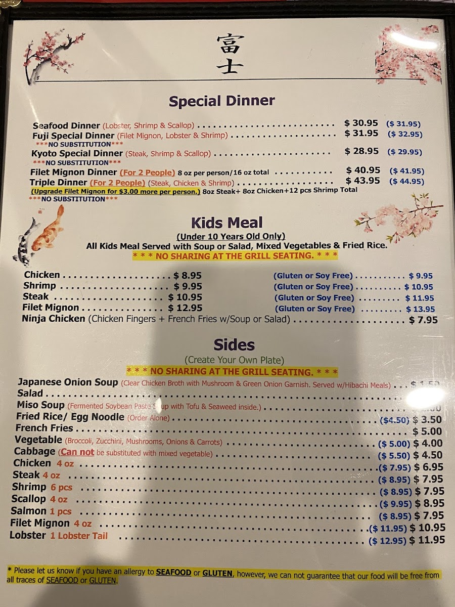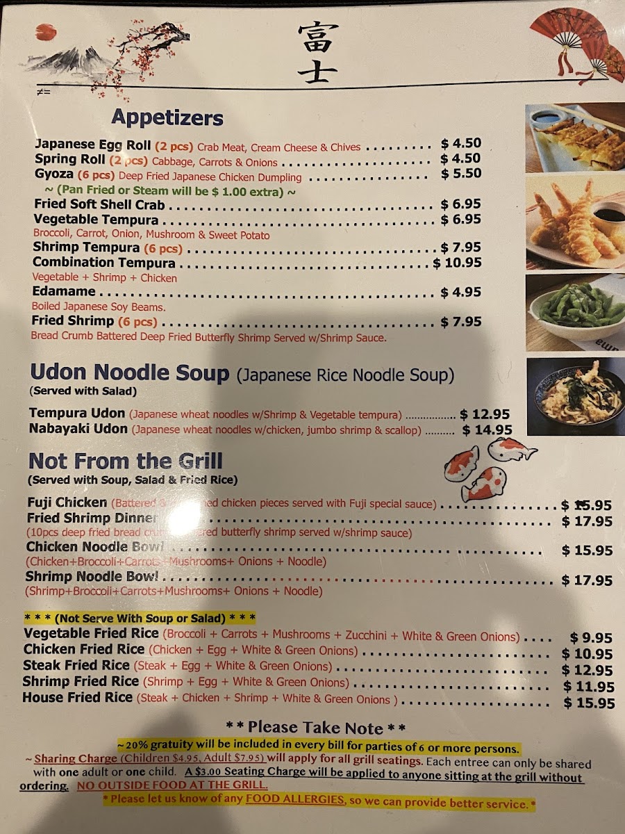 Fuji Japanese Steakhouse - Anderson Menu