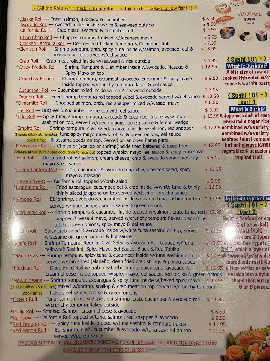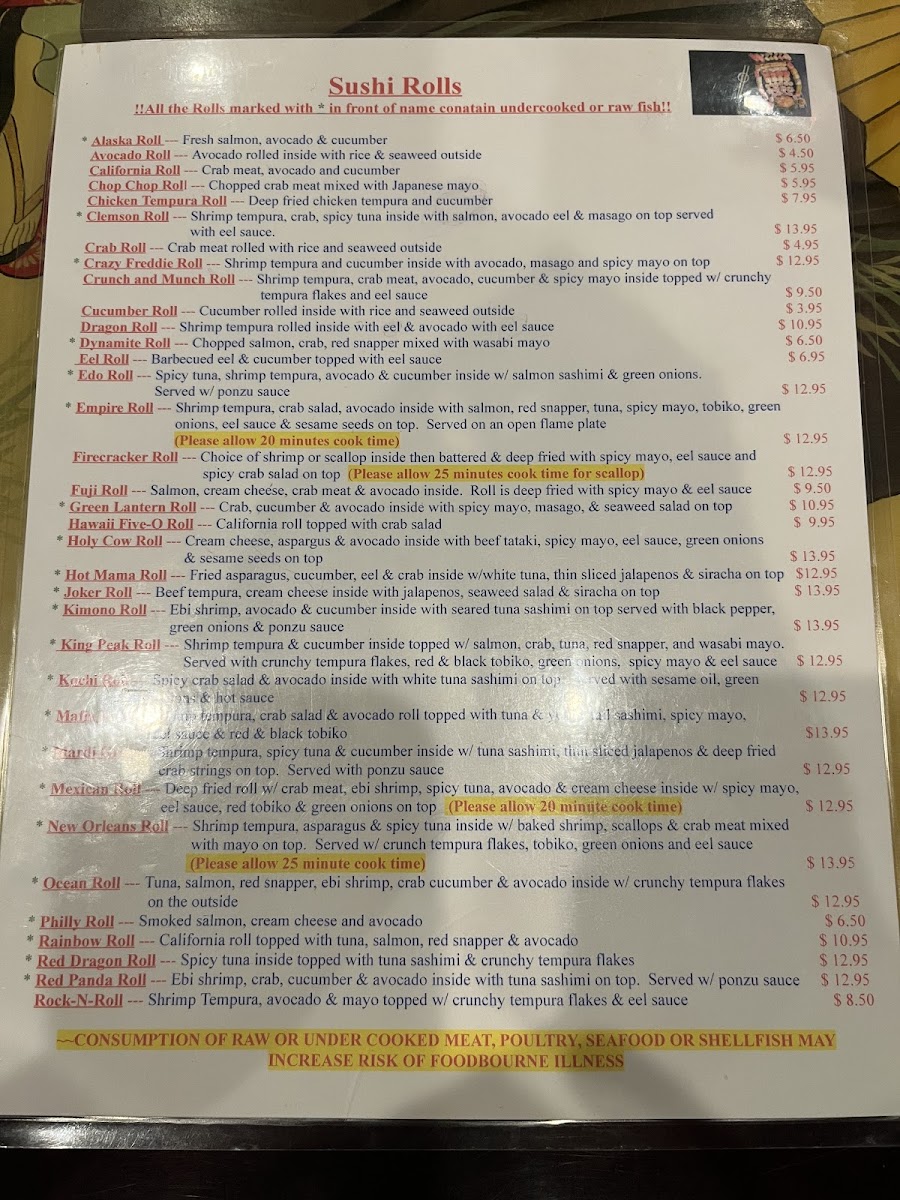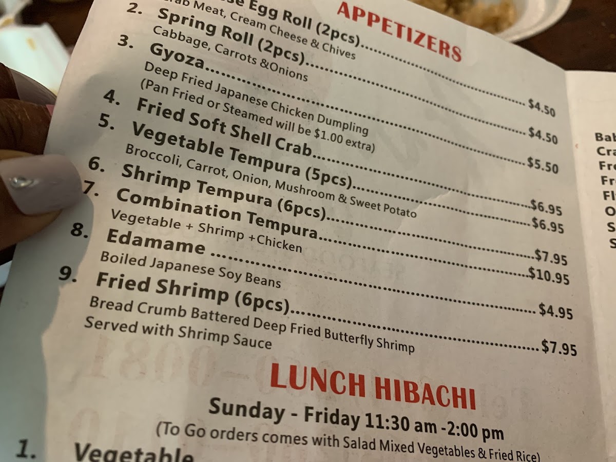 Fuji Japanese Steakhouse - Anderson Menu